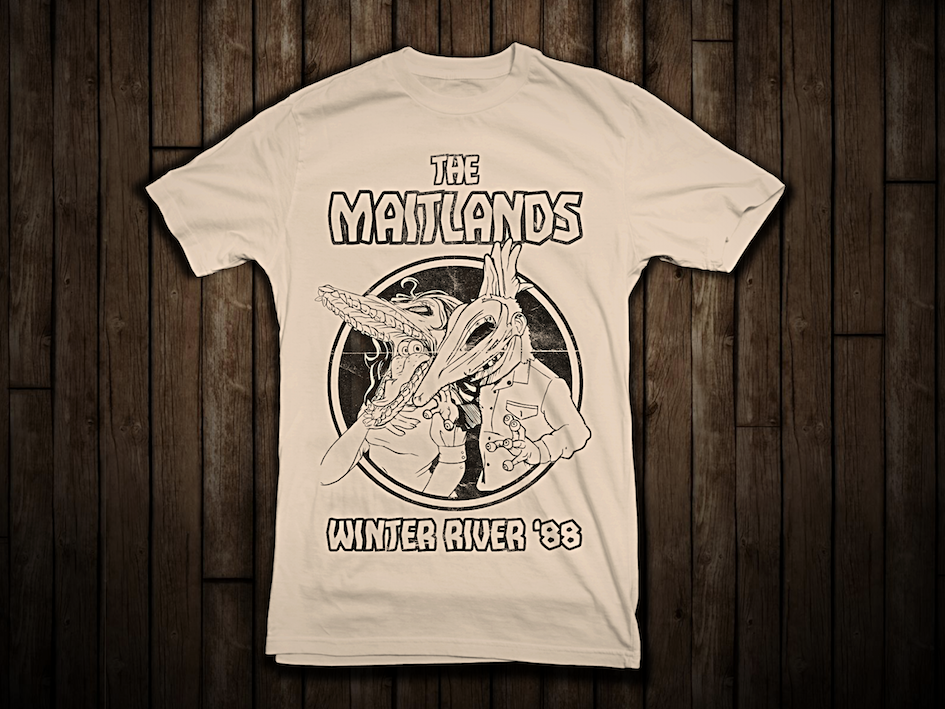 Printed by Hand in Uttoxeter, England this shirt features our Vintage Concert Inspired 'The Maitlands' (Beetlejuice) themed design.