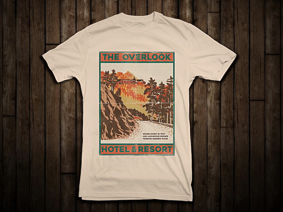 Printed by Hand in Uttoxeter, England this shirt features our Vintage Travel Inspired 'Overlook Hotel' (The Shining) themed design.