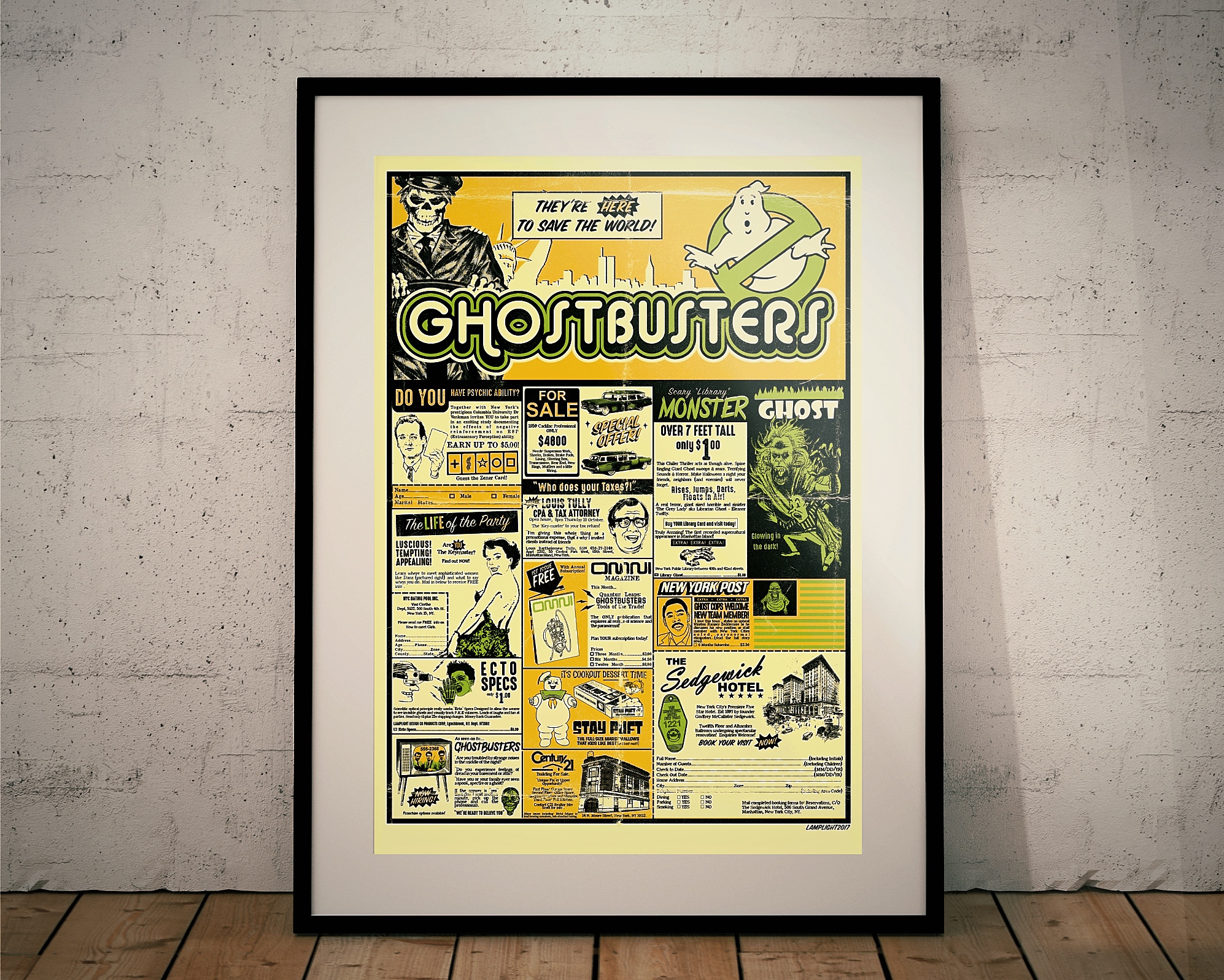 Vintage comic ad inspired 'Ghostbusters' Print featuring classic movie trivia/quotes. Printed on 180gsm matte paper.