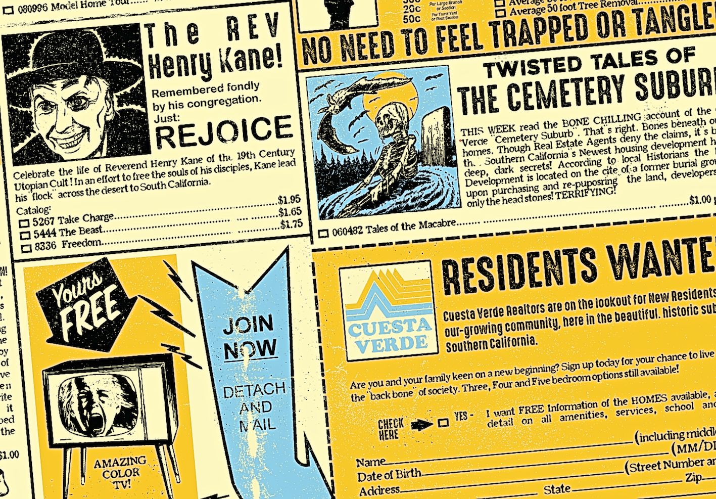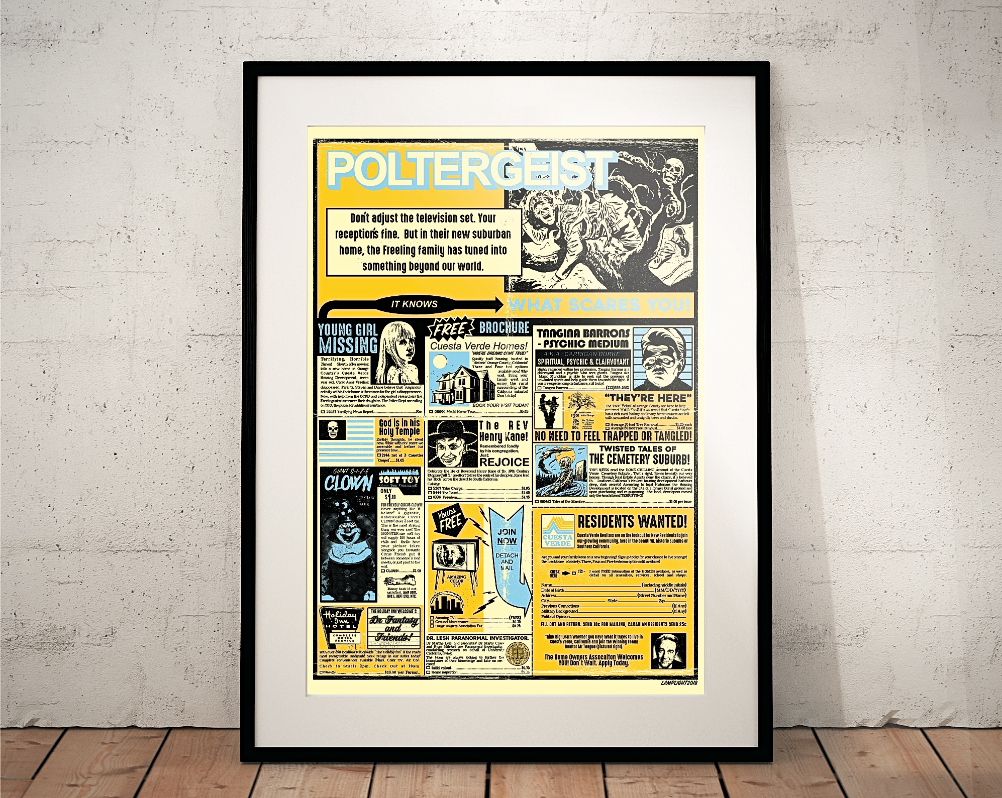 Vintage comic ad inspired 'Poltergeist' (movie) Print featuring classic movie trivia/quotes.