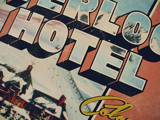 This print features our vintage postcard inspired, Overlook Hotel themed design from 'The Shining'.