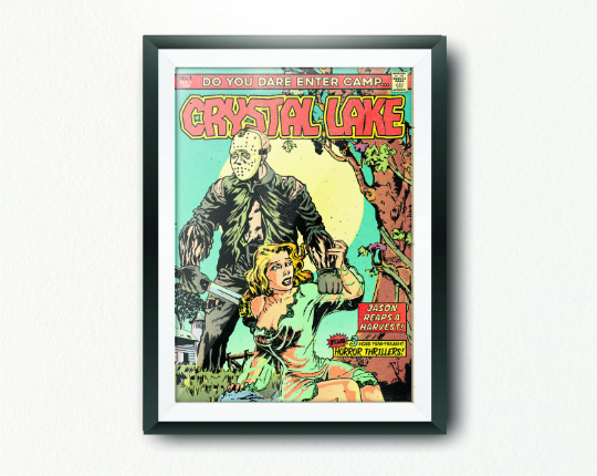 This is a half tone, comic-art inspired tribute to classic 80s cult horror movie series.