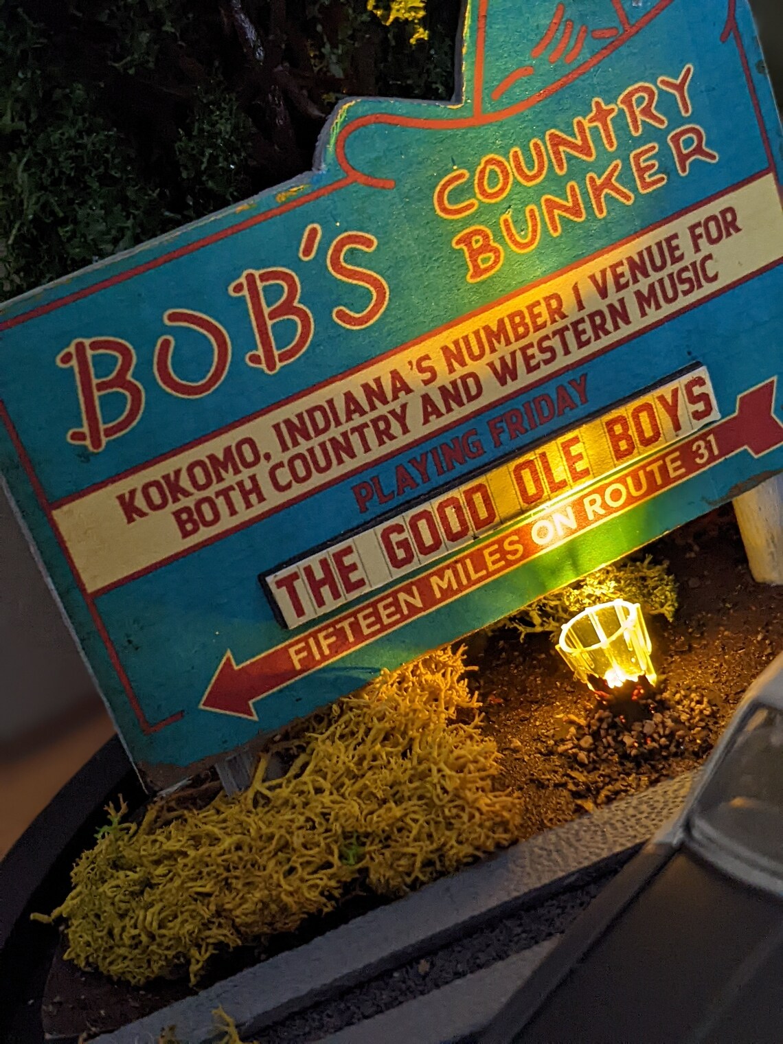 "Uh, the name of the place is, uh, Bob's Country Bunker. Here we are."